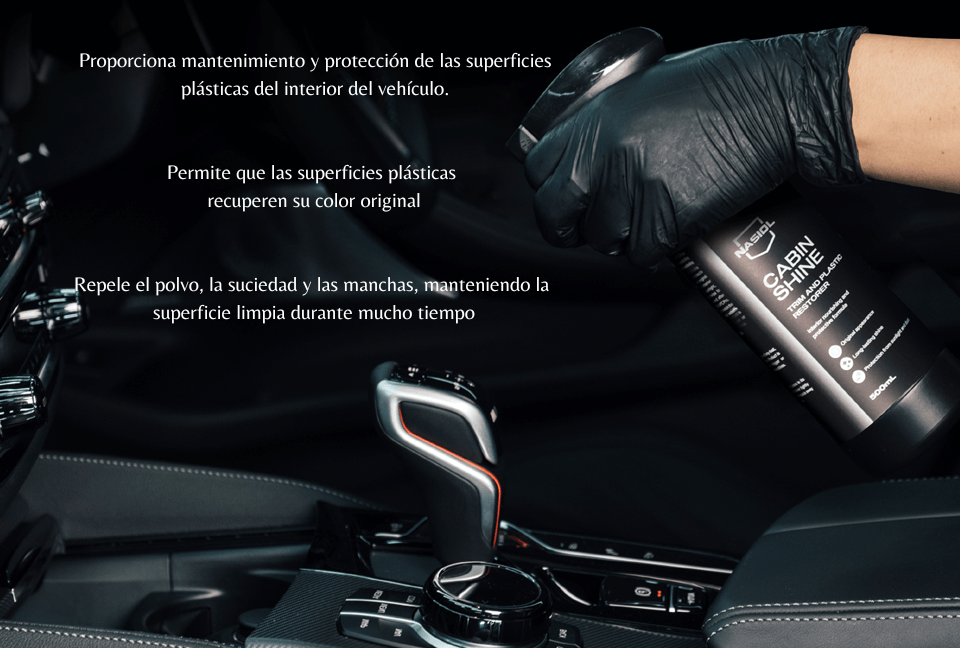 Para evitar el deterioro de las piezas interiores de plástico, goma y vinilo, es necesario protegerlas con una solución especialmente formulada como Nasiol CabinShine.